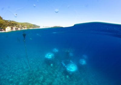 The Scripps Institution of Oceanography Lagrangian Drifter Laboratory (LDL) is partnering with Nemo’s Garden and the University of Aversa to provide environmental data to support the monitoring of growing conditions and to provide data for engineering the structures under differing weather events. To that end, a Directional Wave Spectra Drifter (DWSD), an instrument built by the LDL, has been moored in proximity to the Garden. This device collects information about water temperature at the sea surface, the direction from which waves are propagating, and the average height of the biggest waves, and transmits these data via satellite telemetry to the user. The information from the wave buoy can be used by Nemo’s gardeners to understand the ocean’s activity within the region and the mechanical stresses on the spheres.